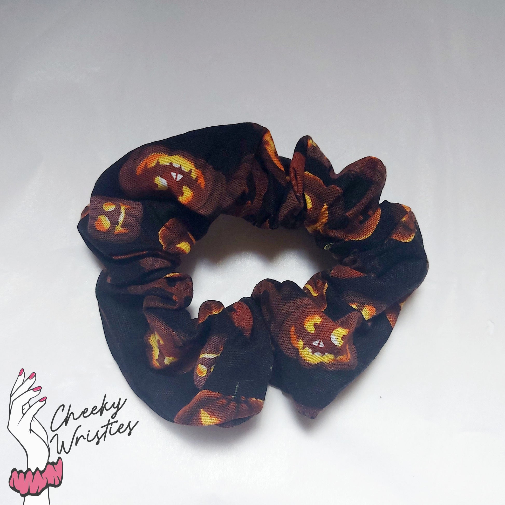 A soft yet durable Glowing Jack-O-Lantern Scrunchie.