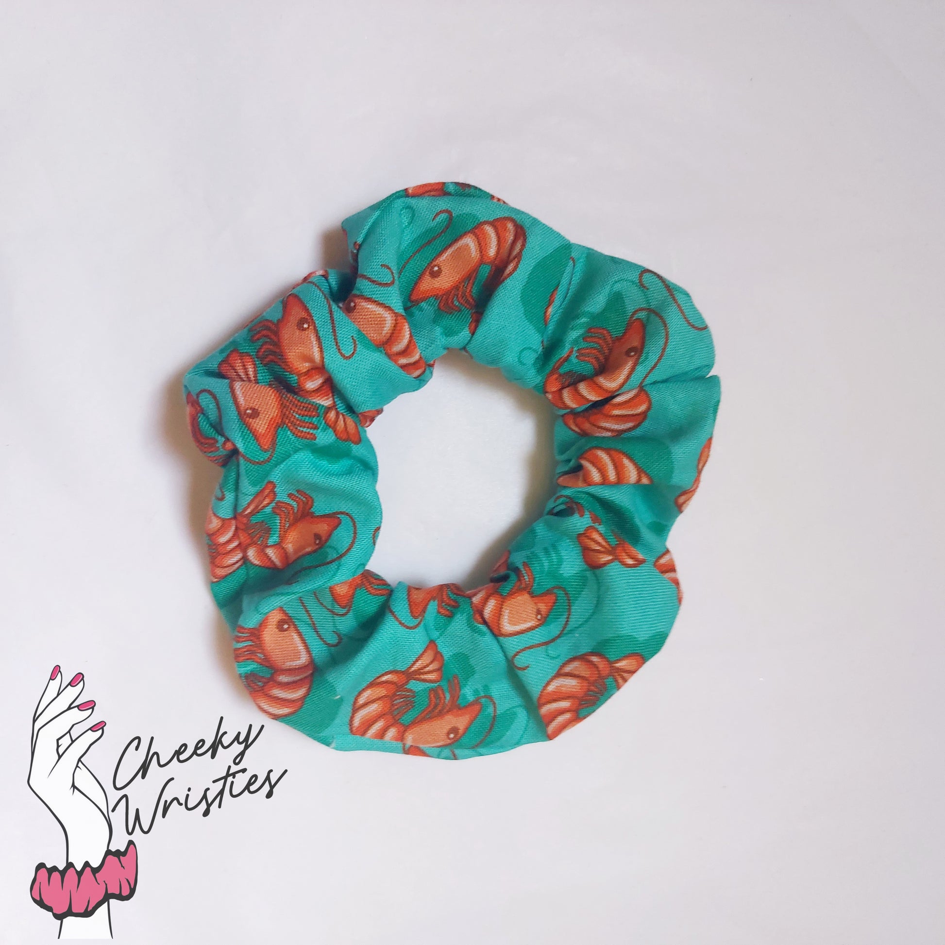 A soft yet durable Prawns / Shrimp cutie Scrunchie.
