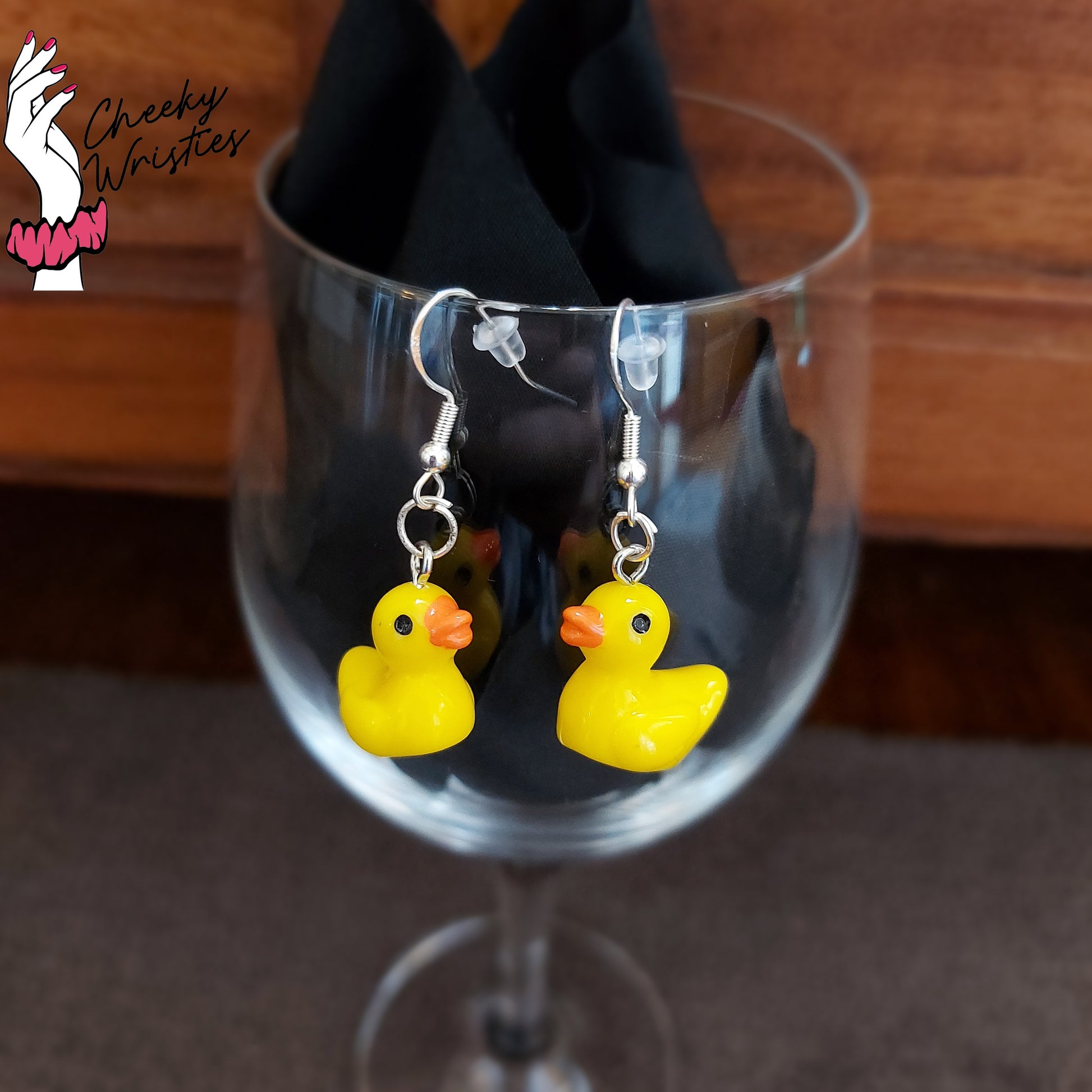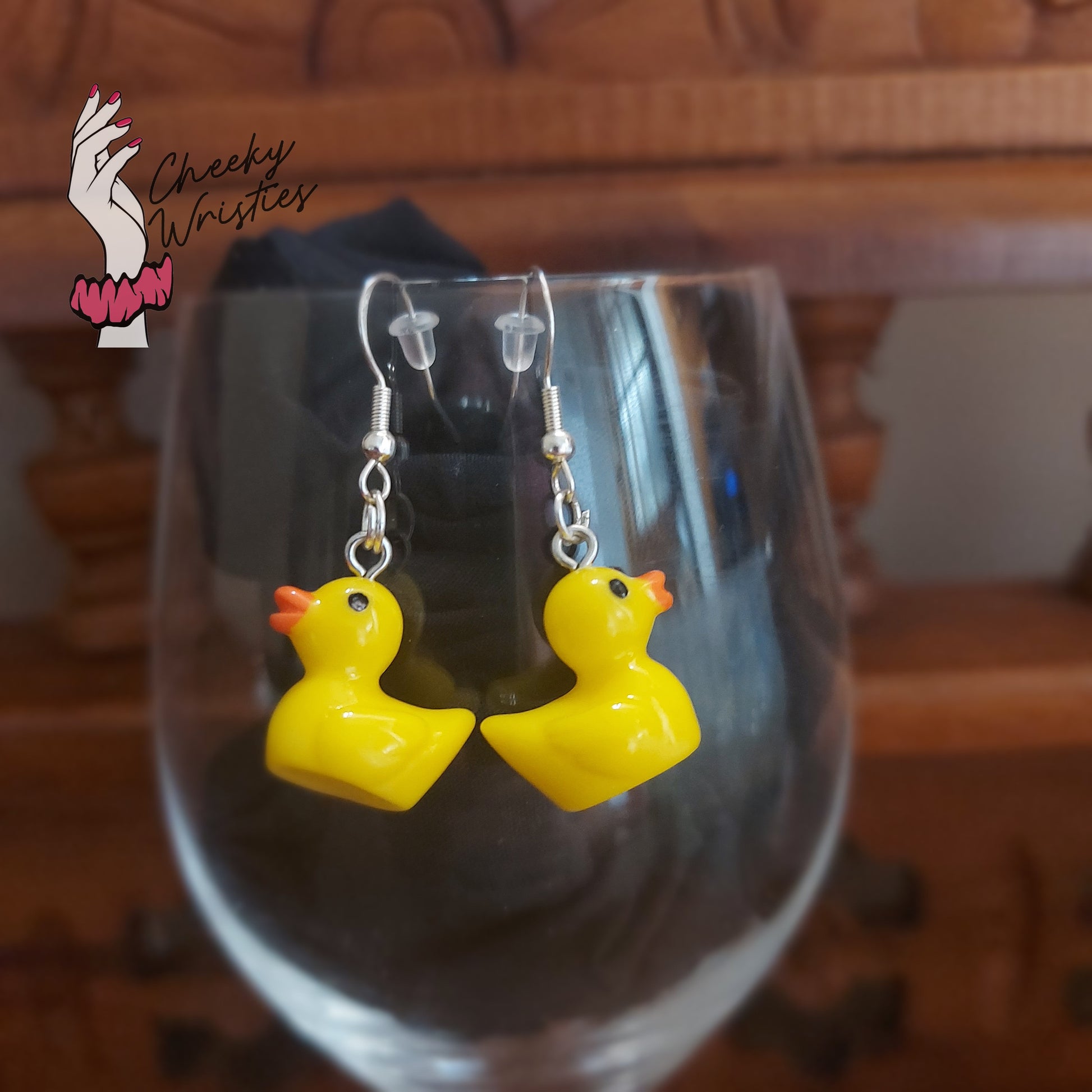 These Rubber Duckie Dangle Earrings are made from resin with Sterling Silver earring hooks which are Hypoallergenic with rubber earing back making these perfect for sensitive or itchy ears and are lightweight.
